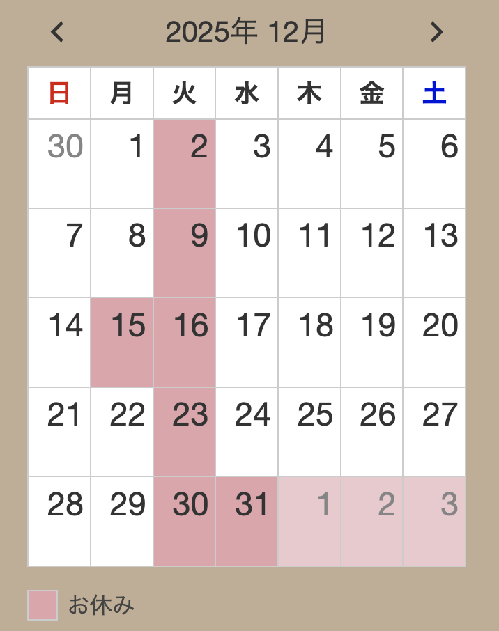 12月30日火曜日から2026年1月6日火曜日までお休みとさせていただきます。